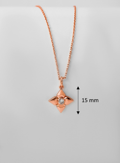 This pure silver-created pendant set is plated in rose-gold giving it a glossy finish. The pendant is a compass star with 4-edges and centrally placed crystal making it look sophisticated for classic fine-dine or a sit-down occasion.