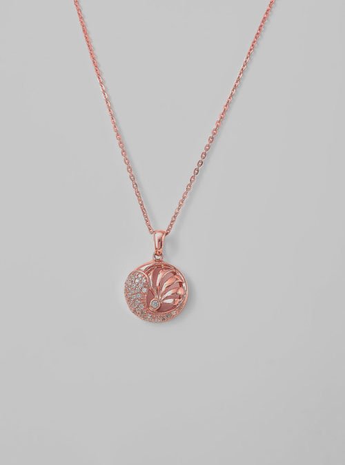 Curated in pure silver, this pendant is coated in rose gold. It looks charming with its indie paisley design that won’t fail to startle you with its aura. It has a stranded cage-like side design with a paisley studded with Cz crystals. This can be the perfect gift for the powerful Indian women in your life.