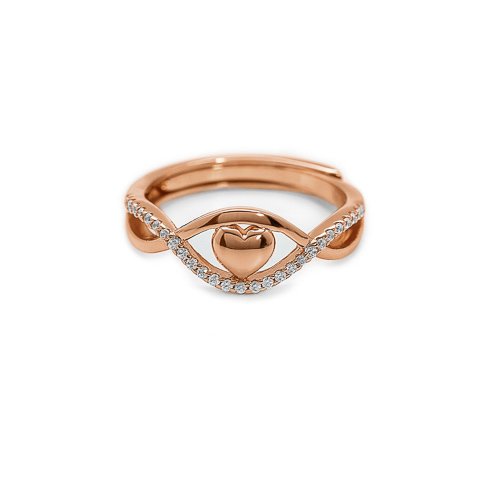 This unique ring is a stupendous design of an eye shaped twist band made in rose-gold body with a chunky heart placed in the middle of it looking like a love-eye emoji. It is adorable yet rare and will surely grab eyeballs at all places due to its aesthetic design.