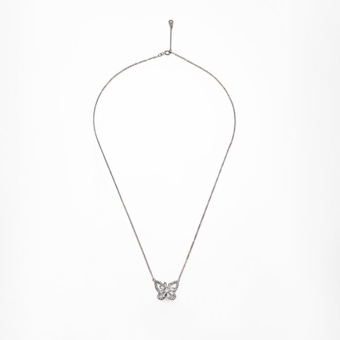 This pendant is made in pure silver. It has a butterfly-shaped bling body made with crystal overalls that move with movement and leave a glittery shine. It is very exclusive this season and will flip heads everywhere you go.