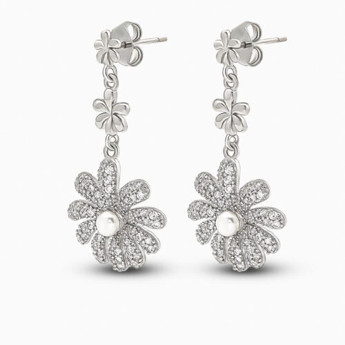 Silver Dangling Flower Earrings