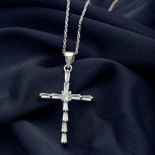 This is a pure silver pendant for women. It is extremely blingy and looks divine. It is a holy-cross design with linear layered crystal overalls. This one can be a great gift for the spiritual person in your life.