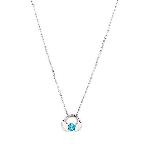 The delicate pendant is made in sleek silver and the pendant is crafted in a rim-form and embedded with an ocean-blue crystal to make you look beautifully YOU.